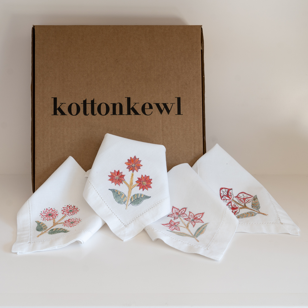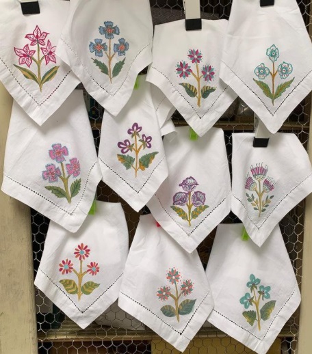 CARACTERÍSTICAS: Colección Kala, con motivos florales. Individuales 100% algodón, confeccionados y pintados a mano. Se pueden lavar en lavadora