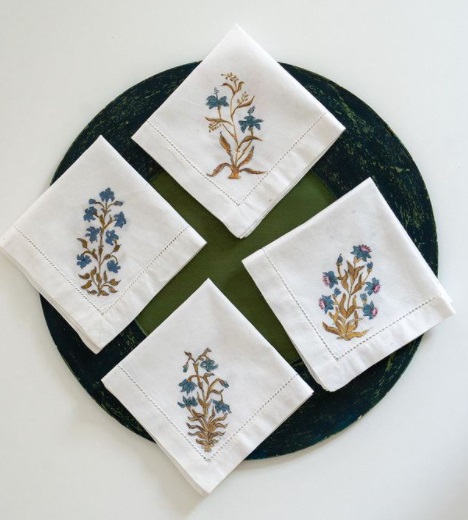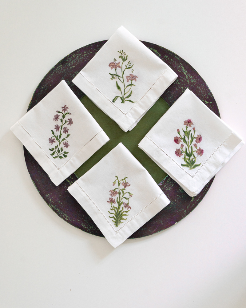 CARACTERÍSTICAS: Colección Komal, con motivos florales. Individuales 100% algodón, confeccionados y pintados a mano. Se pueden lavar en lavadora