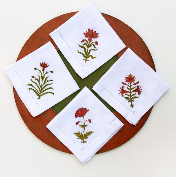 CARACTERÍSTICAS: Colección Tiare, con motivos florales. Individuales 100% algodón, confeccionados y pintados a mano. Se pueden lavar en lavadora
